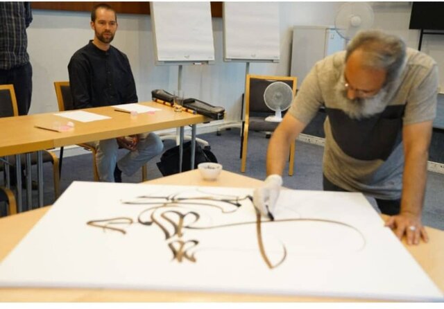به گزارش تجسمی آنلاین، حمید عجمی که به عنوان بنیانگذار خط معلی شناخته میشود، با حضور در یک کارگاه هنری واقع در برلین به سوالات حاضران پاسخ داد و همچنین تابلویی مزین به این خط برای حضار مکتوب کرد.
